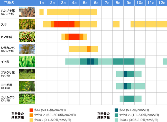 • 季節ごとに多い花粉